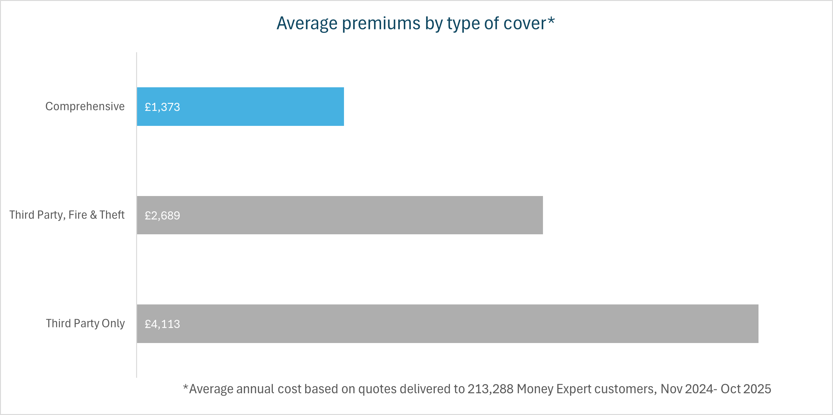 In fact, we found that customers looking for fully comprehensive cover were offered cheaper annual premiums than any others: